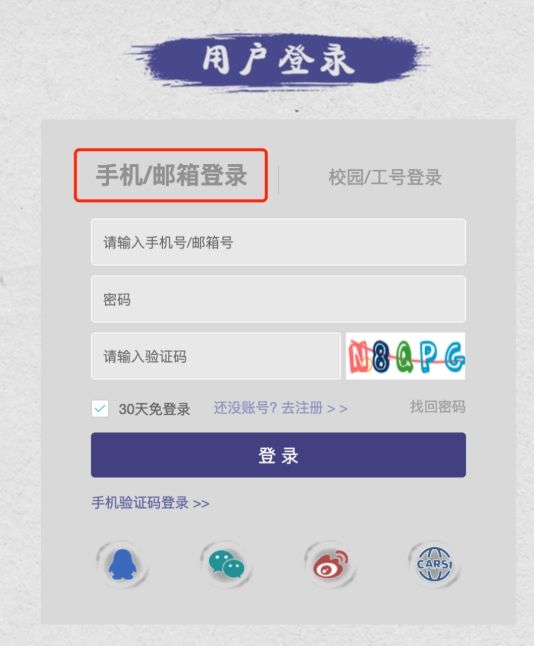 使用刚才注册的账号,选择“手机/邮箱登录”,填写注册时注册的手机号和密码,填写验证码后点击“登录”按钮。