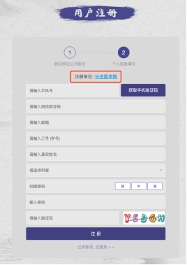 (2)在校园网IP范围内可直接显示单位名称,核对单位无误后请按页面提示填写相关信息,通过手机验证后点击“注册”按钮即可注册成功。注册后,在学校外任何地方都可以直接登录不受ip限制。