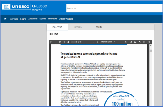 一、联合国教科文组织(UNESCO)《Guidance for generative AI in education and research(生成式人工智能在教育与研究领域的应用指南)》(2023)